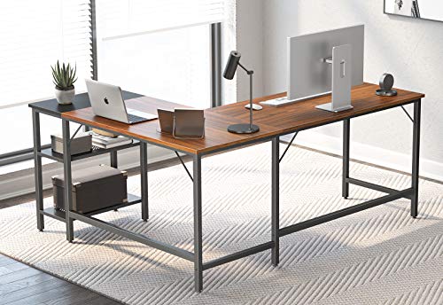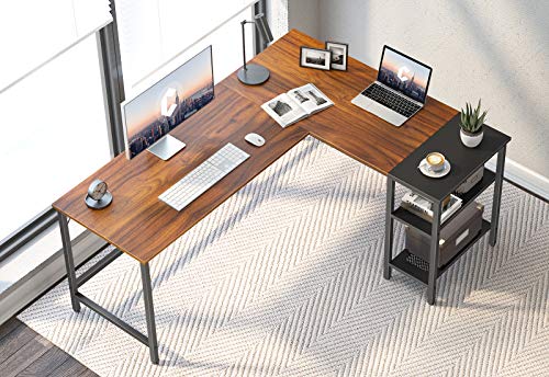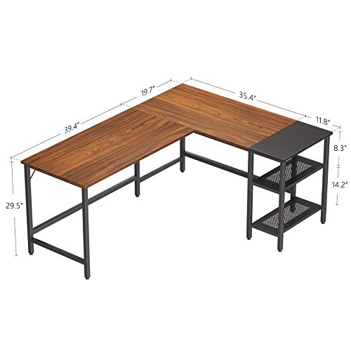 CubiCubi - CubiCubi L Shape Computer Desk with Storage Shelf Study Writing Table for Home Office, Modern Simple Style PC Desk, Black Metal Frame