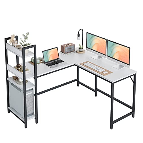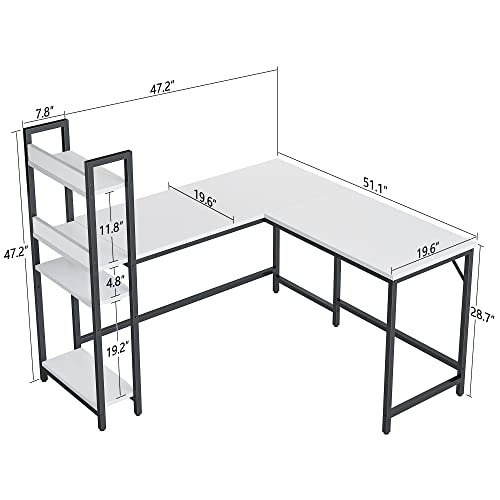 CubiCubi - CubiCubi L Shaped Desk, 51.1 Inch Computer Corner Desk with Hutch, Storage Shelves, Writing Gaming Study Desk with Bookshelf, White