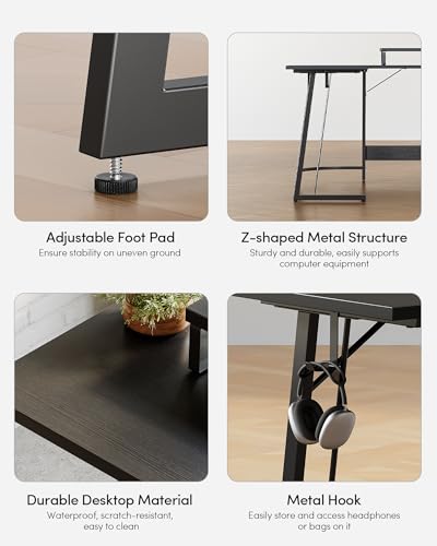 CubiCubi - CubiCubi L Shaped Gaming Desk Computer Office Desk, 47 inch Corner Desk with Large Monitor Stand for Home Office Study Writing Workstation, Black
