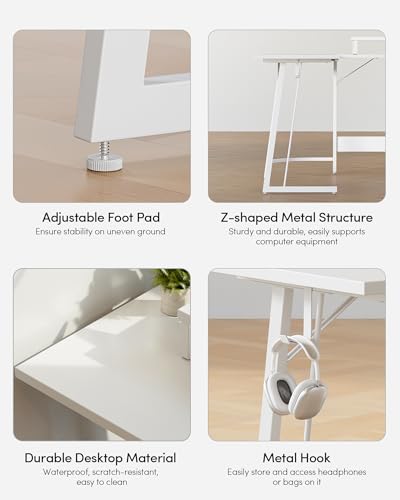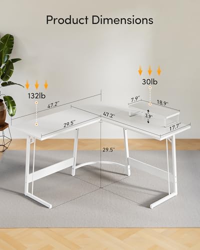 CubiCubi - CubiCubi L Shaped Gaming Desk Computer Office Desk, 47 inch Corner Desk with Large Monitor Stand for Home Office Study Writing Workstation, White