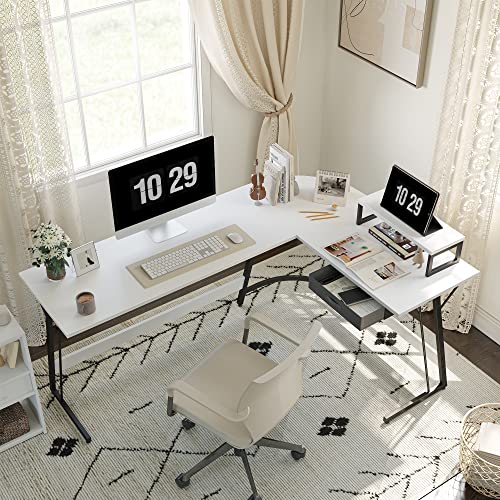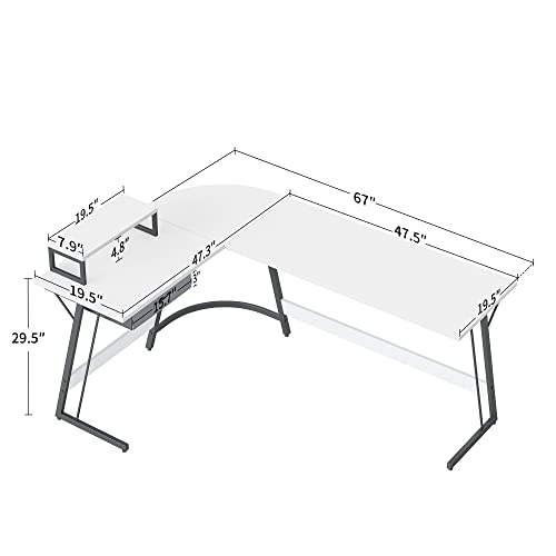 CubiCubi - CubiCubi Modern L-Shaped Desk Computer Corner Desk, 67" Home Office Writing Study Workstation with Small Table and Drawers, Space Saving, Easy to Assemble,White