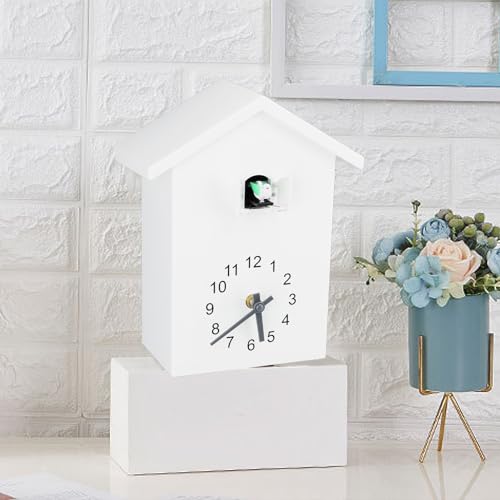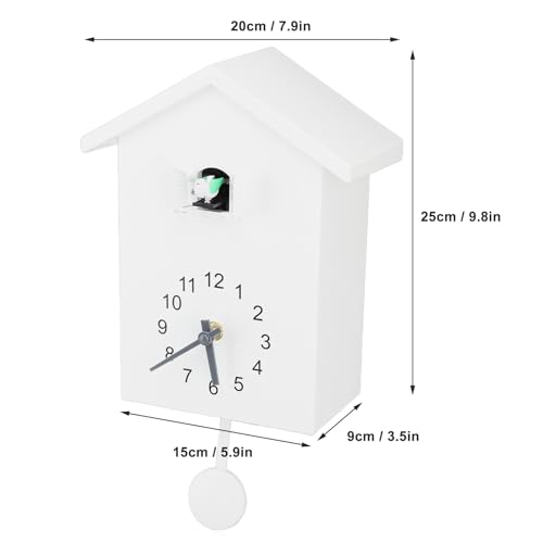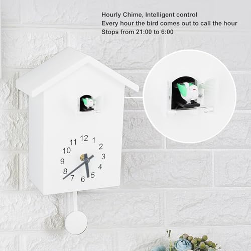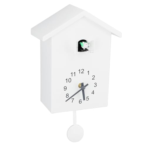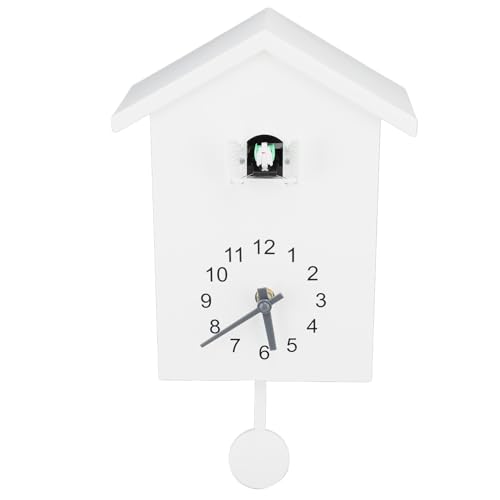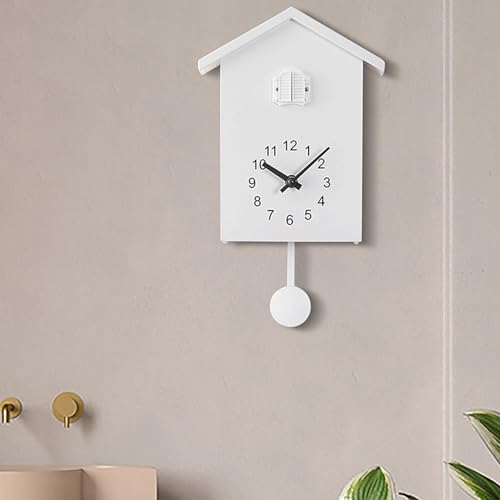 WOHPNLE - Cuckoo Clock Wall Hanging, Bird House Pendulum Wall Clock with Bird Voice Call Decorative Coco Clock for Home, Office, Bedroom (White)