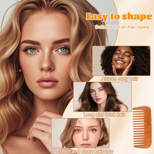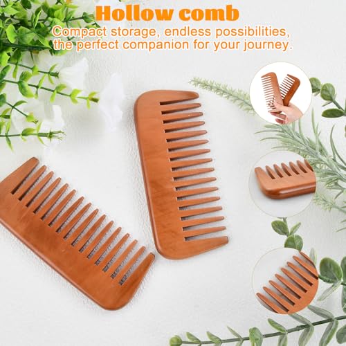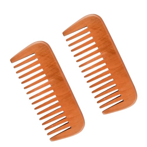Culinavog - مشط خشب مصنوع يدويا بأسنان عريضة مضادة للشحنات الكهربائية، مشط شعر خشبي صغير بأسنان عريضة طبيعية للرجال والنساء من كولينافوج، طقم من 2 قطعة