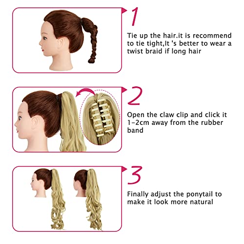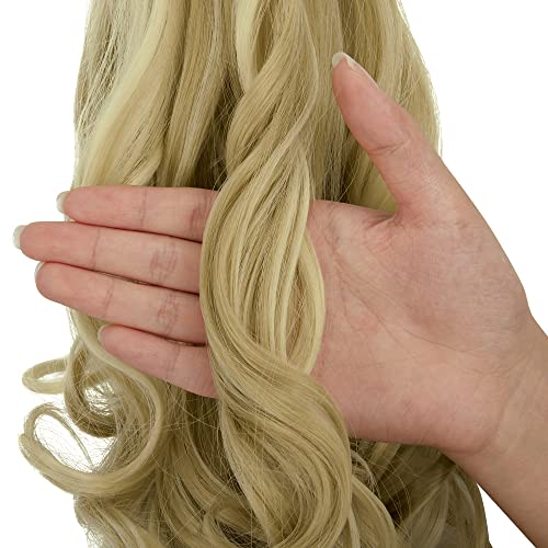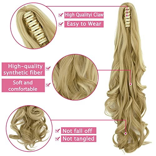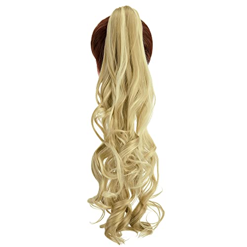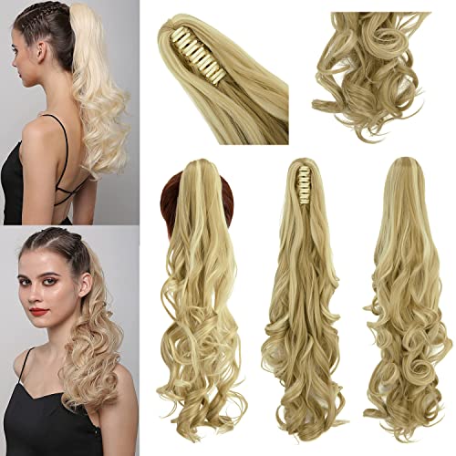 CULKET - وصلات اطالة شعر ذيل حصان بمخلب طويل من كيولكيت، وصلات شعر على شكل ذيل حصان / ذيل حصان اصطناعي مجعد سميك للفتيات والنساء مقاس 24 بوصة مجعد - اشقر رمادي فاتح واشقر مبيض
