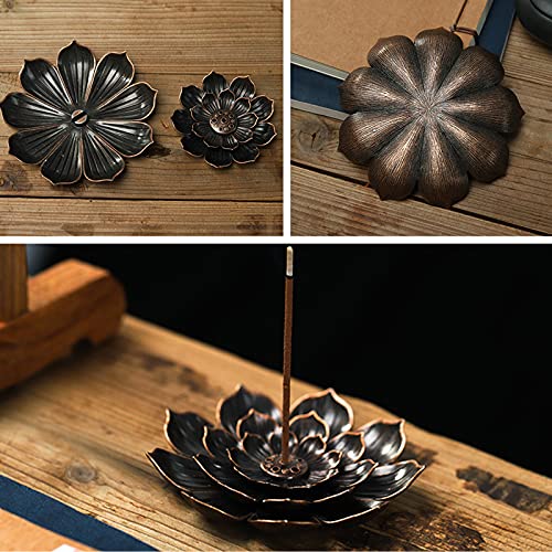 - 【Exquisite Workmanship】: Incense stick holder is made of brass, solid and durable. its 3-layer lotus aesthetic design makes it look more elegant, makes it be classical furnishings with meditation and aid-sleeping effects. Size: approx. 9cm/3.5inch in diameter and 1.3 cm/ 0.52 inch in height