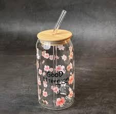 Generic - كوب - كوب زجاجي شفاف صديق للبيئة مع غطاء خشبي وماصة قابلة لاعادة الاستخدام، متانة موثوقة ضد السوائل الساخنة والباردة، سعة مثالية 550 مل، مظهر عصري بسيط
