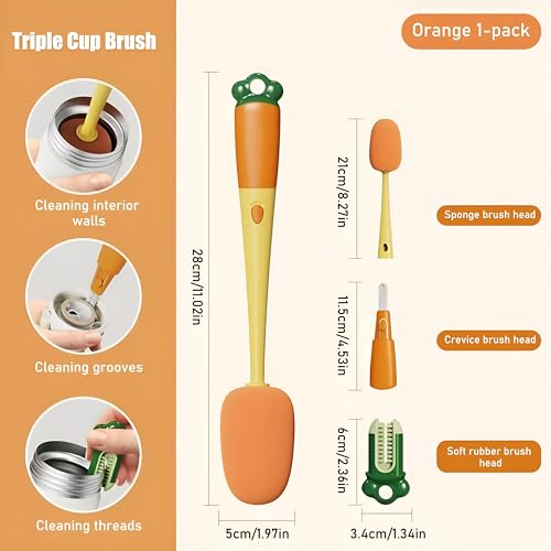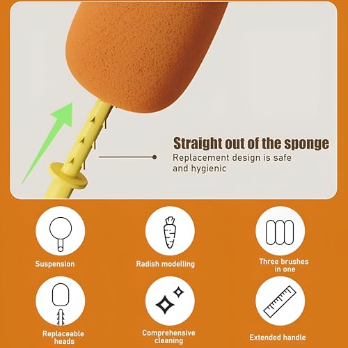 - 3 in 1 clean brush: This multifunction brush is characterized by a removable cartoon handle and includes a shared brush of rubber threads to clean deep grooves and clogged roads, along with a soft -shaped rubber cupping brush for stubborn spots. Easy cleaning with a soft sponge header provides all corners and bottles bottles without leaving scratches or residue.