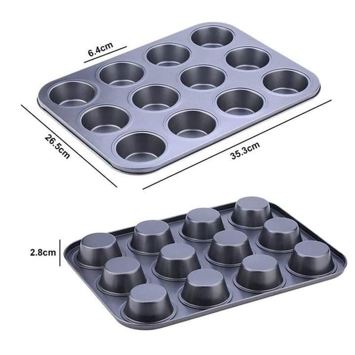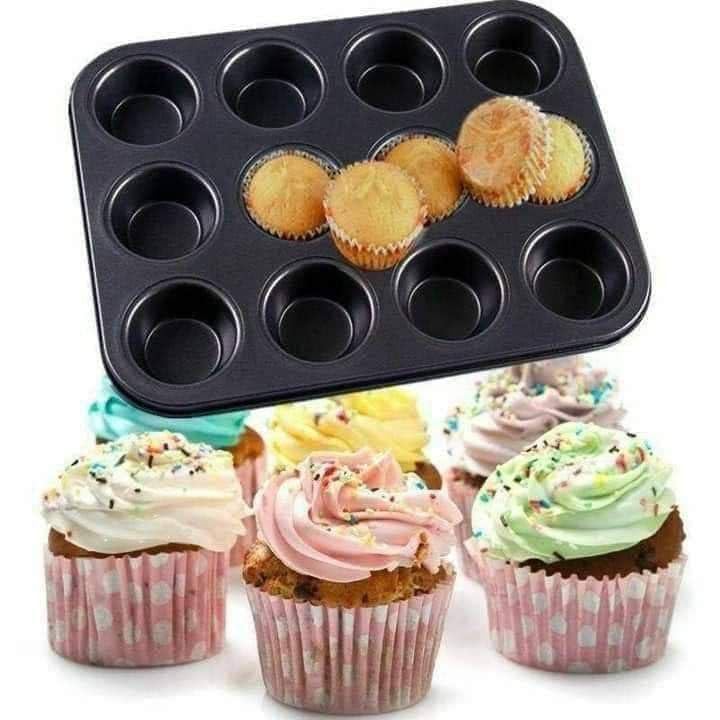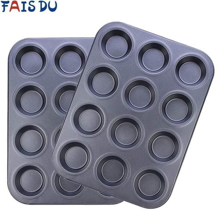 LC - Cupcake Baking Pan 12 Cavity Non-Stick Carbon Steel Cake Pan Muffin Bread Jelly Pan