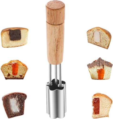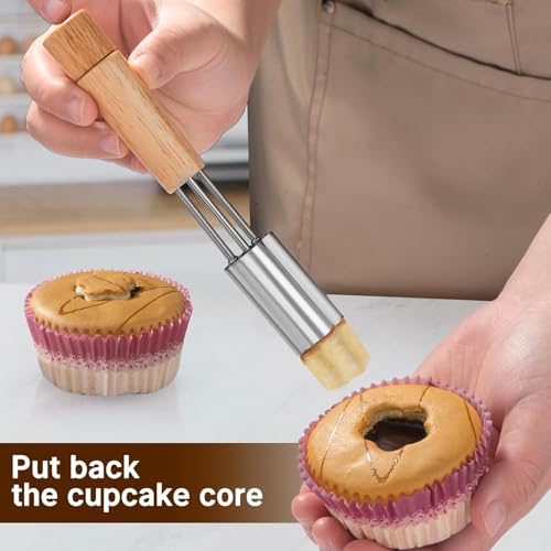 - 🔧 EASY TO USE: Simply insert the corer into the center of your cupcake, and pull out to reveal a perfectly cored center. Push down the plunger to effortlessly eject the cupcake core.