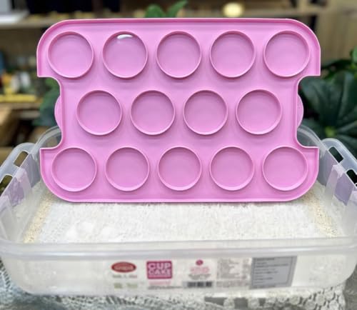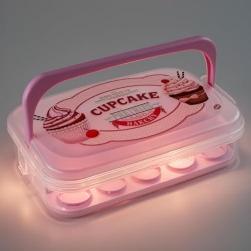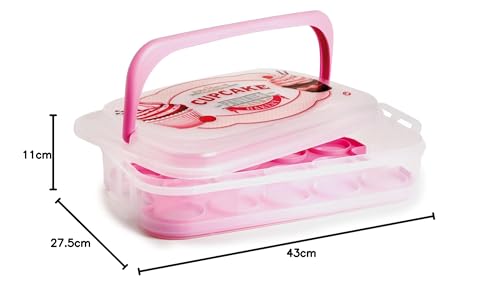 Generic - Cupcake Storage Container - Pink 7-Litre BPA-Free Plastic Box with Handle & Reversible Tray for Fresh Baked Goods, Ideal for Home or Bakery Use