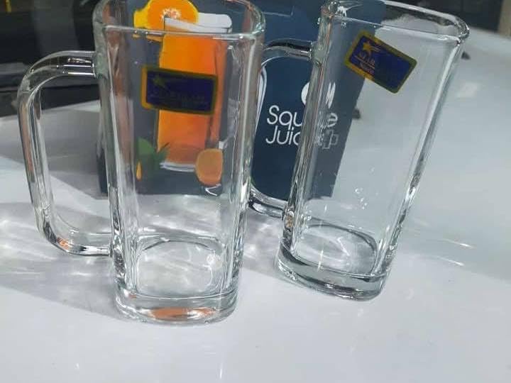 Generic - Cups set of 2 pieces, hexagonal lines for juices (Set of 2 psc Square Tea mug 310 ml)