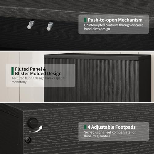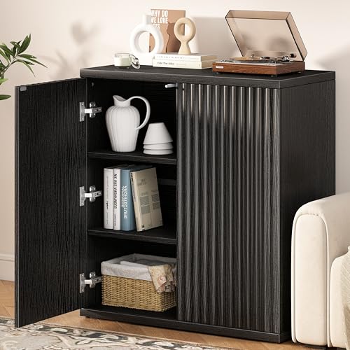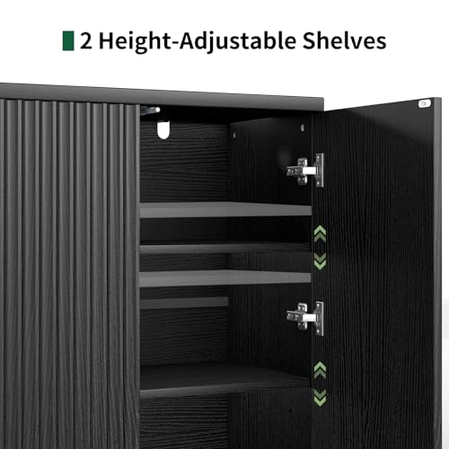 Curlaky - خزانة بوفيه جانبية مخددة مع مساحة تخزين من كيرلاكي، خزانة جانبية خشبية مع ابواب، بوفيهات كريدنزا صغيرة وخزائن جانبية للمطبخ، خزائن مميزة للمدخل وغرفة المعيشة والرواق والمنزل، اسود