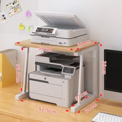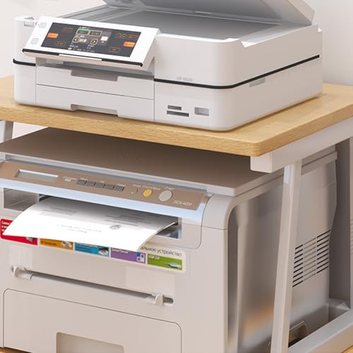 Curtainboro - Desktop Printer Stand, 2 Tier Wood Printer Shelf, Under Desk Small Table for Scanner, Copier, Small Space Storage Organizer for Home Office Kitchen