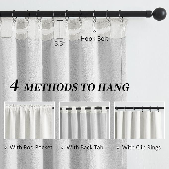 Curtains and Rods - Curtains & Rods Elegant 100% Blackout Double Linen Face Curtains with Multi-Way Header, 300cm W x 260cm L, Off-White