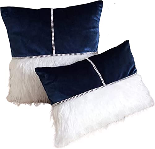 Generic - طقم خدادية مخدة كوشن فرو بالحشو، مخمل، ازرق