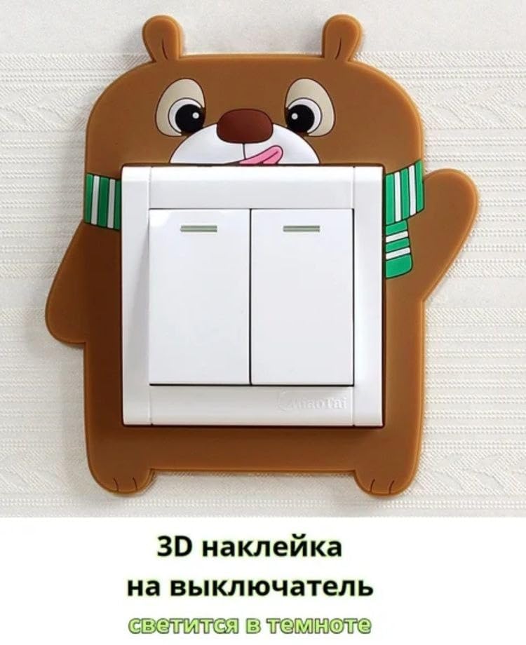 Generic - Cute 3D Silicone Electrical Switch Stickers with Dog and Teddy Bear Designs, Perfect Home Decoration for Kids’ Rooms, Living Room, Bedroom, and More (2 Piece)