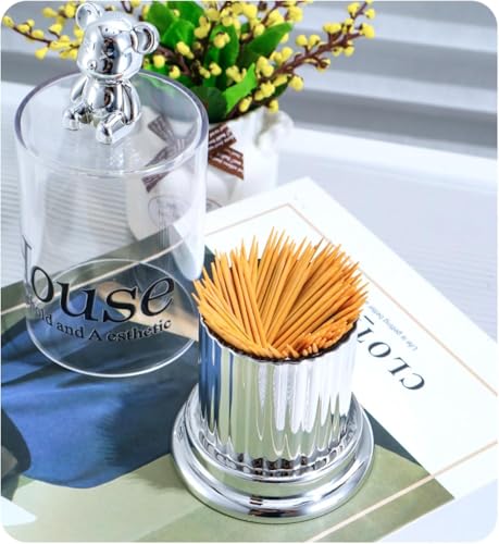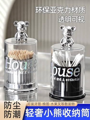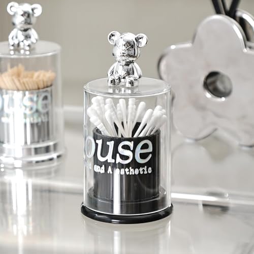 - Stylish Dual-Purpose Organizer: Premium acrylic holder with a cute teddy bear lid designed for both cotton swabs and toothpicks — keeps your essentials neatly stored while adding a charming decorative accent