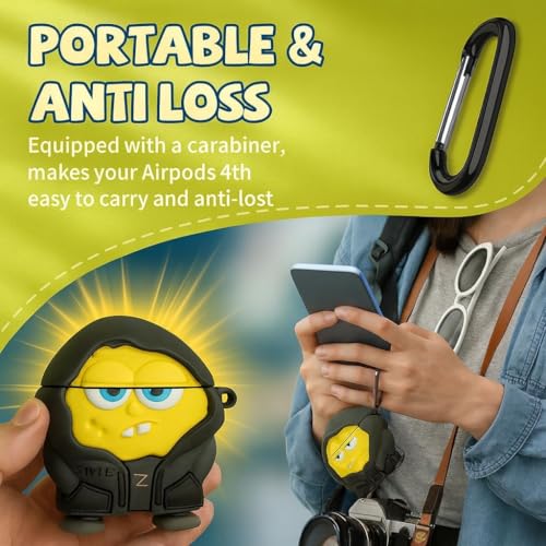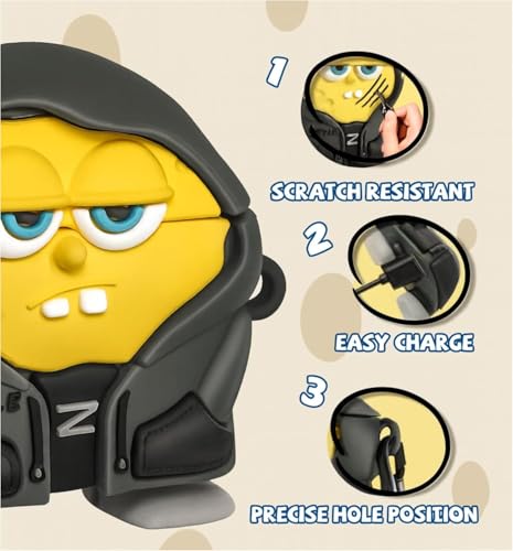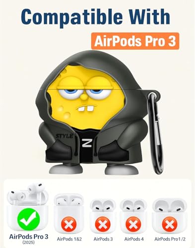 EMOH ROCED - Cute AirPods Pro 3 Case Cover (2025) Kit, 3D Cartoon Kawaii Soft Silicone Protective Case for Apple AirPods Pro 3rd Generation Cover with Keychain for Women, Girls, Boys (Sponge)
