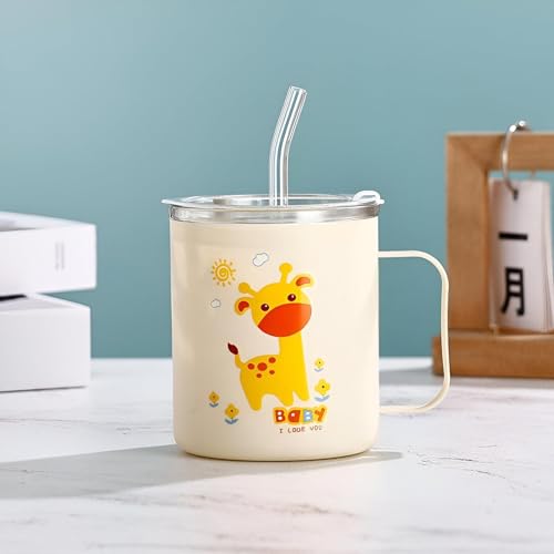 Generic - Cute Animal Mug - Double-Wall Glass Coffee Cup with Straw, Cartoon Theme, Clear Lid, Portable Handle, Perfect for Hot or Cold Beverages (Modil 1)