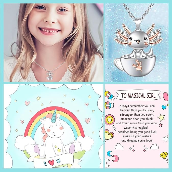 fashion mania - عقد بقلادة كريستال لطيفة على شكل اكسولوتل، هدايا للبنات والاولاد والبنات والابن في عيد الميلاد والكريسماس