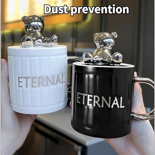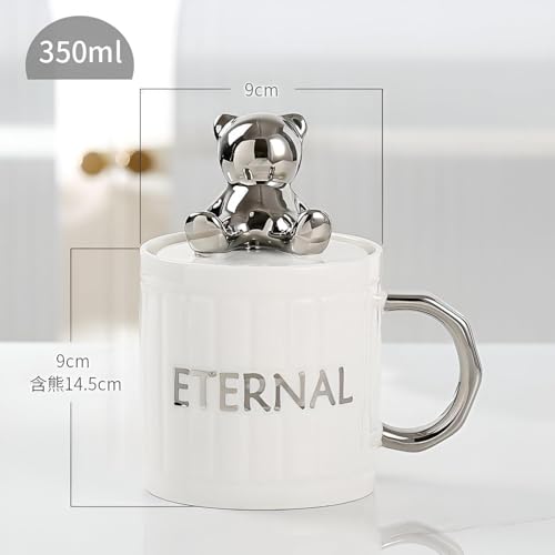 Generic - مج بغطاء بتصميم دب لطيف، كوب قهوة بغطاء من السيراميك لمحبي الشاي أو القهوة (أبيض)