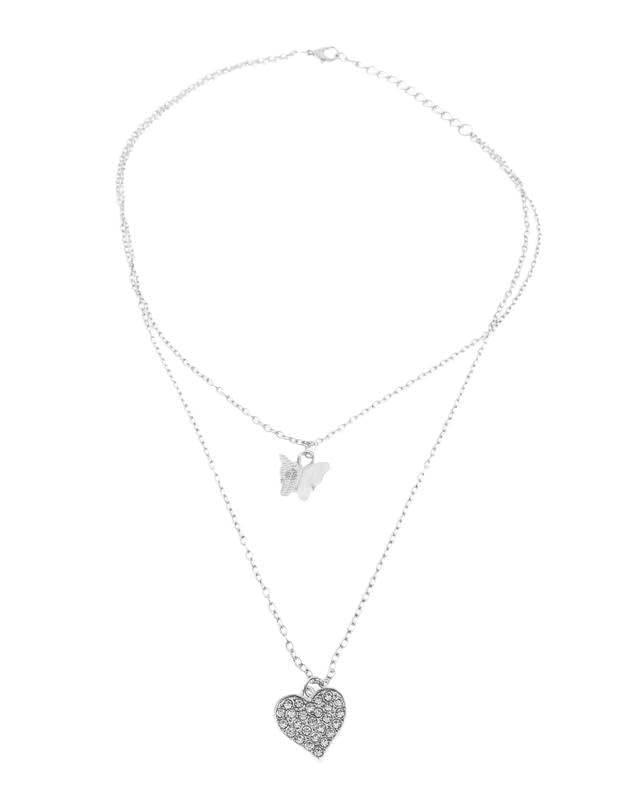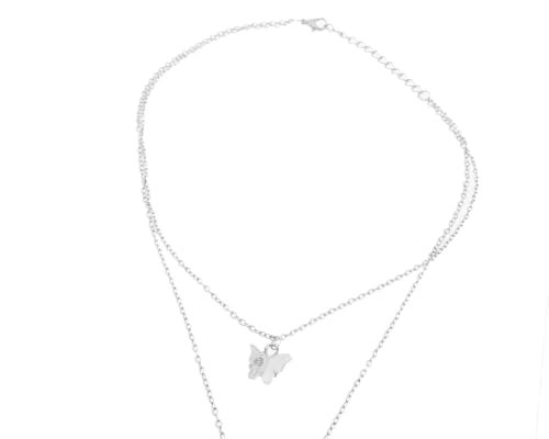 Generic - Cute Butterfly 2 Roles Stainless Steel Pendant Necklace Adjustable Size for Girls, Silver TON-A-1345