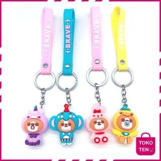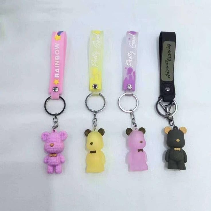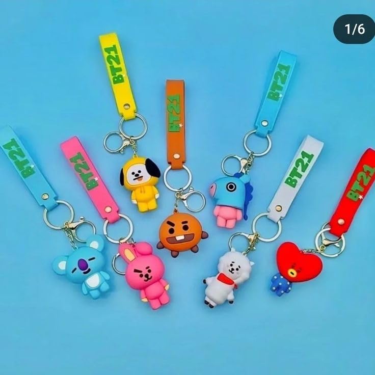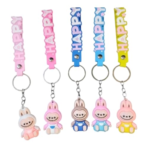 Generic - Cute Cartoon Character Keyring Set, 6 Different Colors, Leather Strap and Unique Charm