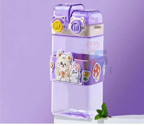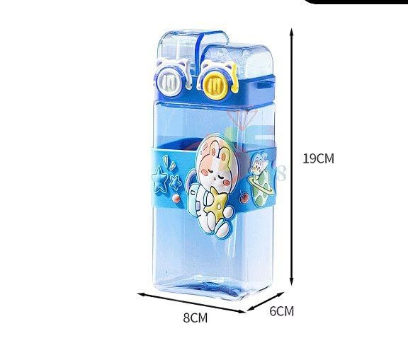 Generic - زجاجة مياه كرتونية لطيفة، غطاء بفتحة مزدوجة، سعة 570 مل، 19×8×6 سم، أكريليك شفاف