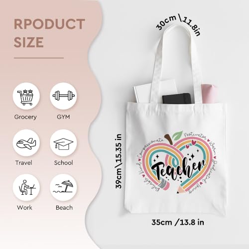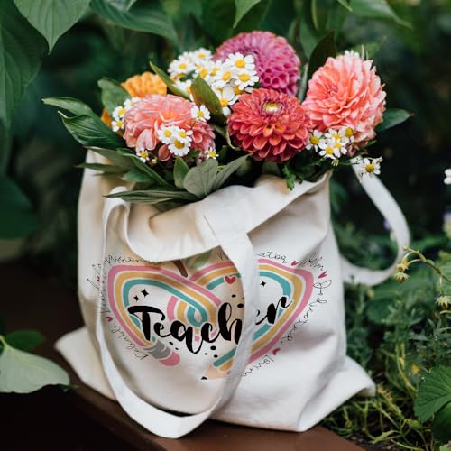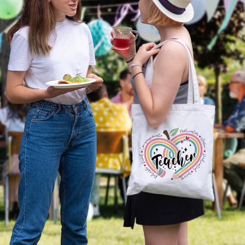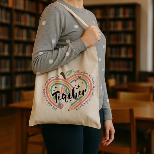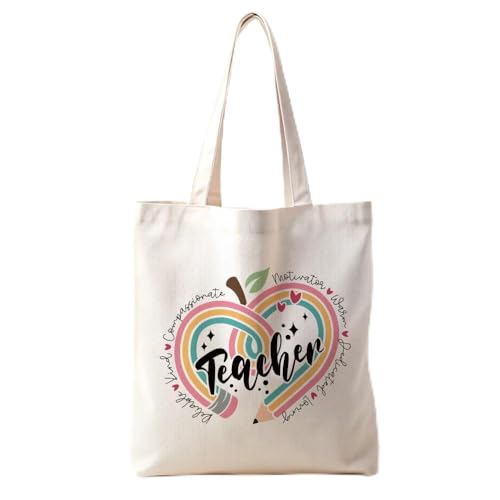 Ymzkpoa - شنطة توت قماشية لطيفة بالوان قوس قزح على شكل تفاحة هدايا للنساء زميلات العمل، شنطة كبيرة توت لتقدير المعلم لعيد المعلم والتخرج وعيد الميلاد، هدية مثالية لمعلمي السنة - 11، ملونة، مقاس واحد