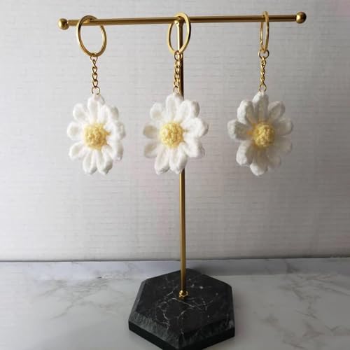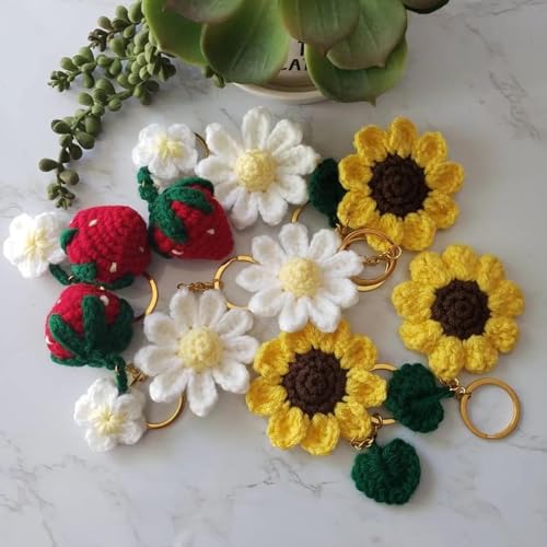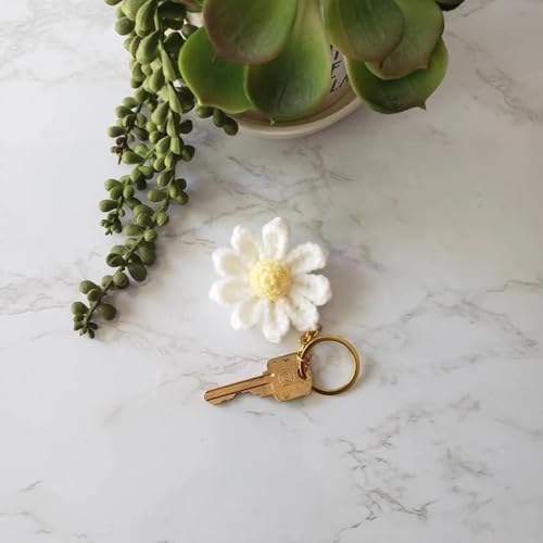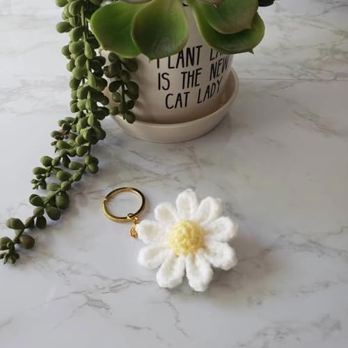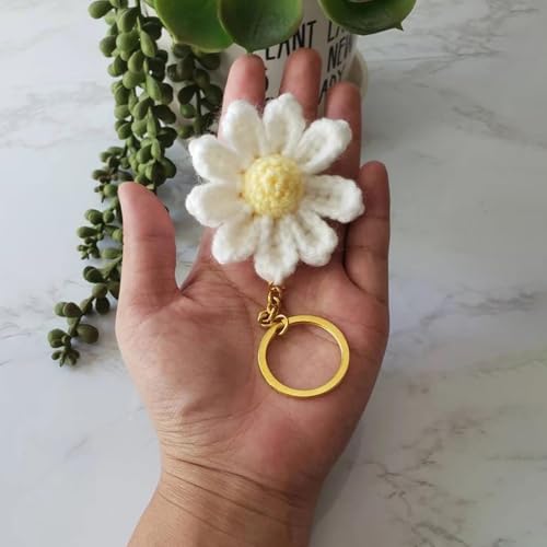 YENKEN - Cute Daisy Keychain, Handmade Crochet Flower Bag Charms, Floral Keyring for Women, Stylish Purse Accessories Gifts
