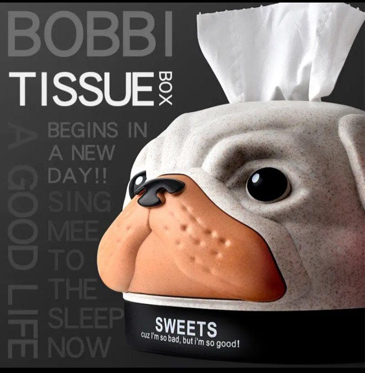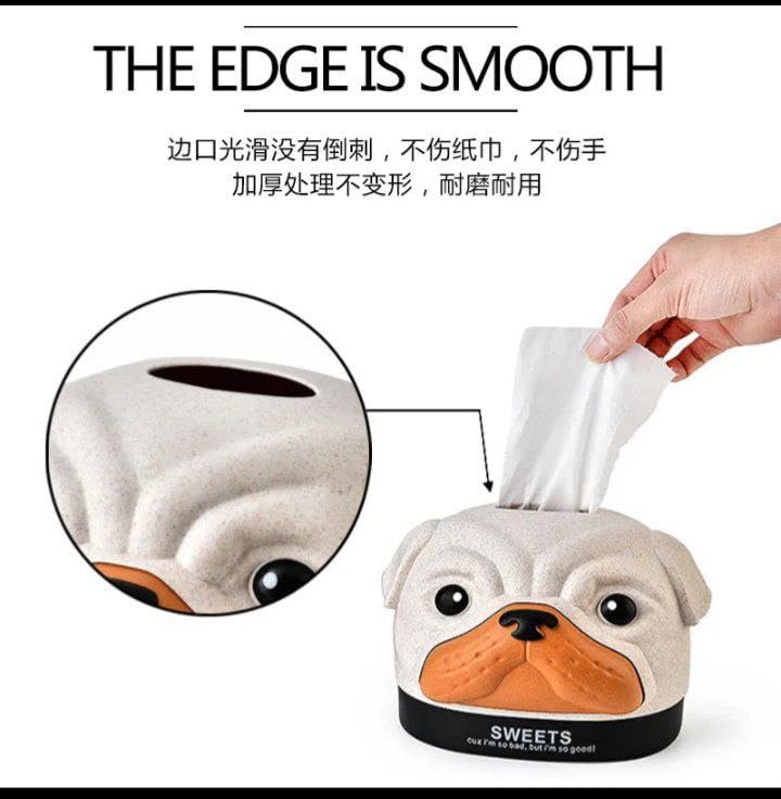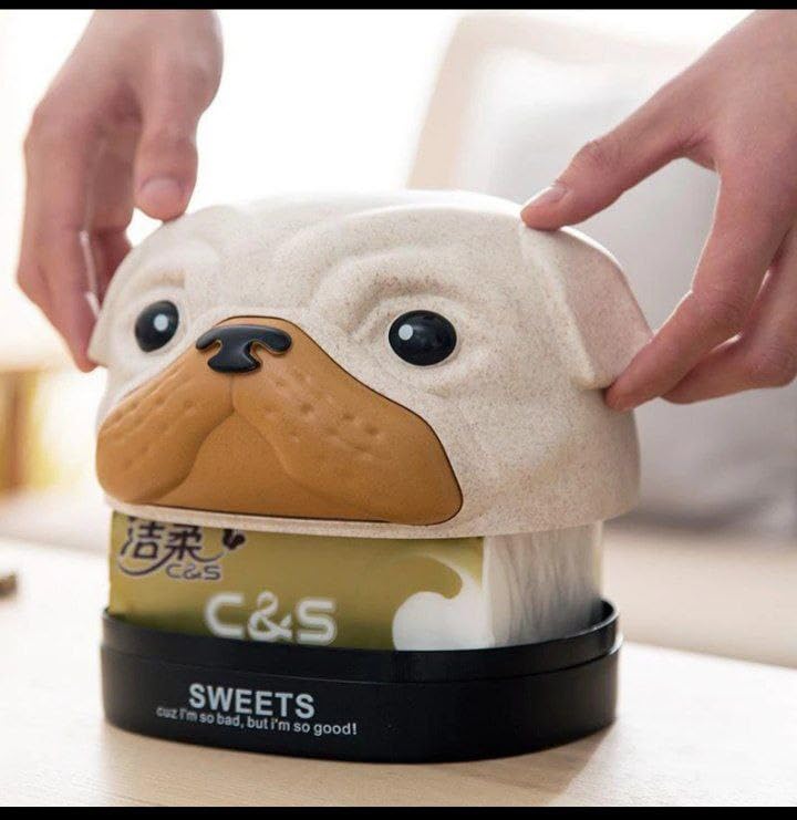 - DESIGN: Adorable pug-shaped tissue box holder with matte finish, featuring expressive eyes and distinctive facial details for a charming decorative touch