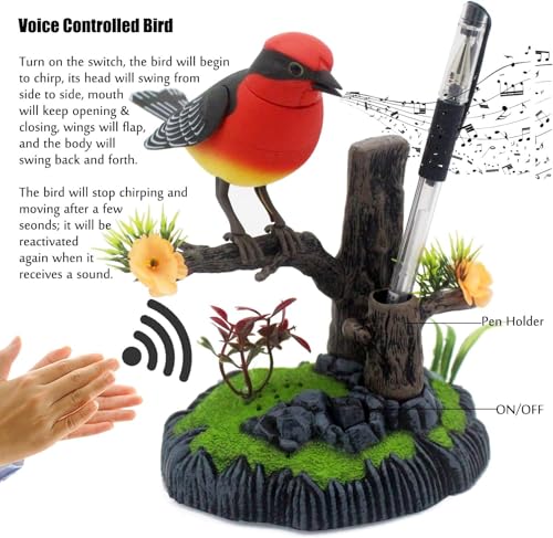 Generic - Cute Electronic Pets Simulation Heartful Sound-Activated Singing and Flapping Bird with Pen Holder – A Charming, Office Home Decor for Kids Toys Gifts