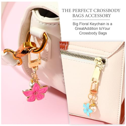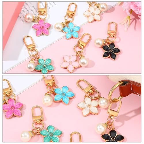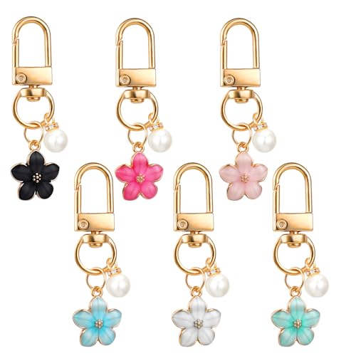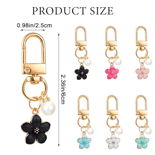 FdcLixuvol - Cute Flower Keychain for Women, 6 Pcs Aesthetic Keychains with Pearl Purse Charms Zipper Pull Charm Handbag Charms Bag Charm for Handbags Backpack Purse Accessories Car Keys Birthday Valentine Gifts