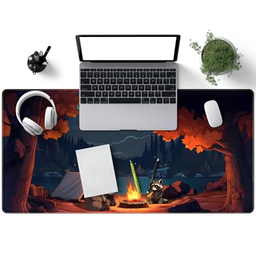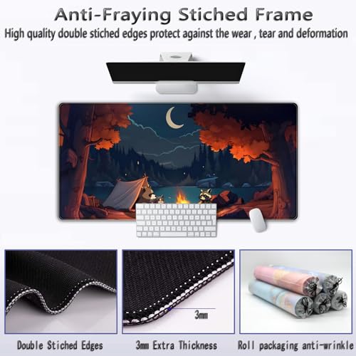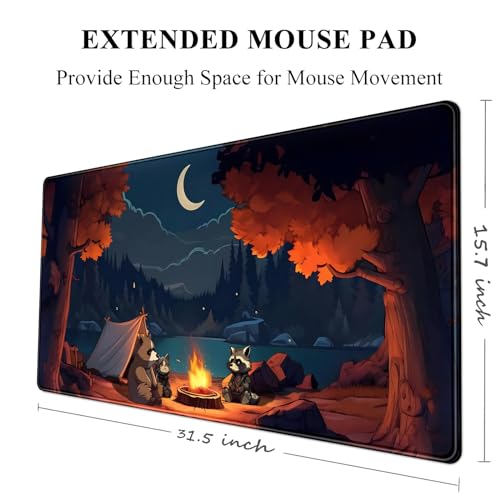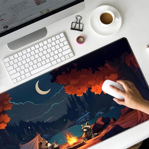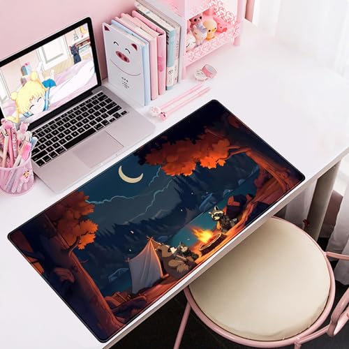Mechanical Cattle - قاعدة ماوس كبيرة للألعاب مقاس اكس اكس لارج بتصميم غابة لطيفة، قاعدة ماوس كبيرة ستايل لوفاي وتخييم خارجي، برسوم متحركة أنمي وطبيعة جمالية للكمبيوتر واللابتوب ولوحة المفاتيح والماوس مقاس 80 × 40 سم