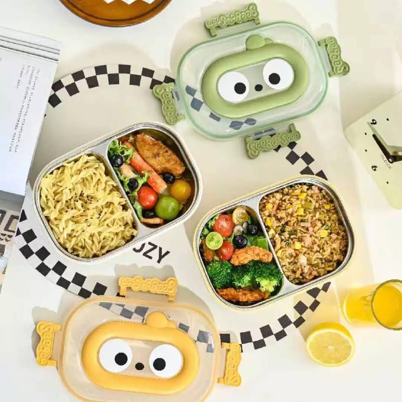 Generic - Cute Lunch Box Big Eyes Design Stainless Steel Lunch Box with 2 Compartments for School Office Yellow