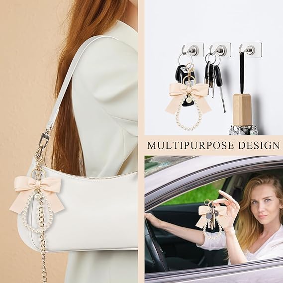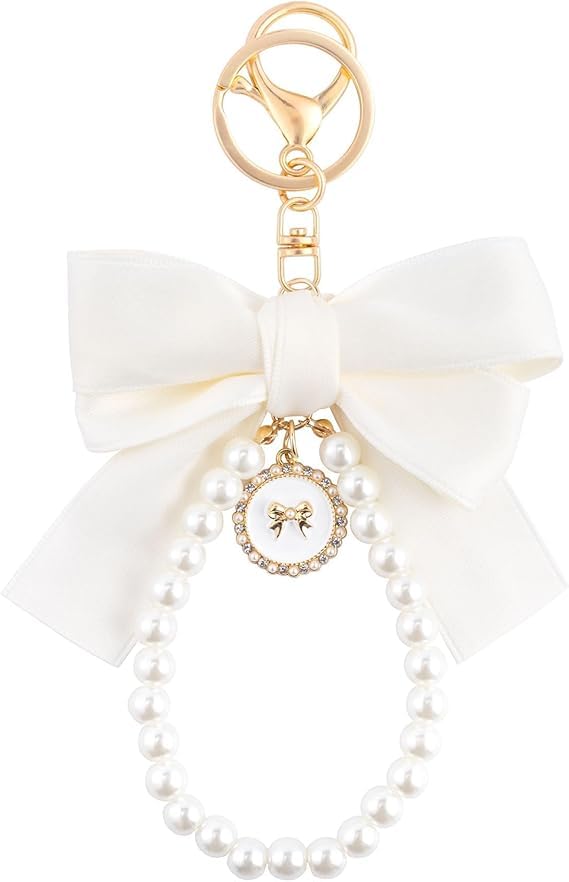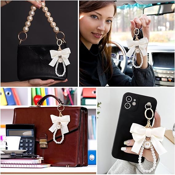 fashion mania - Cute Pearl Chain Bow Keychain Key Chain Pendant Pendant Accessories for Girls Women Handbags Phone