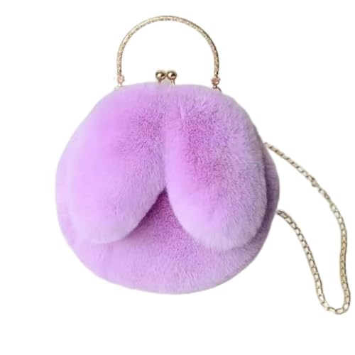 Generic - شنطة نسائية فرو ناعمة كيوت – حقيبة كروس بودي صغيرة بسلسلة معدنية ومقبض يد – تصميم عصري وأنيق