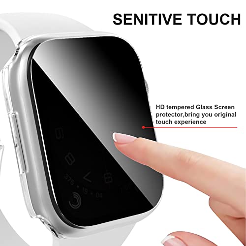 - [Touch Sensitive]:9H hardness tempered glass and High transparency screen protector present a original clear image quality and preserving the original touch sensitivity for your apple watch use.