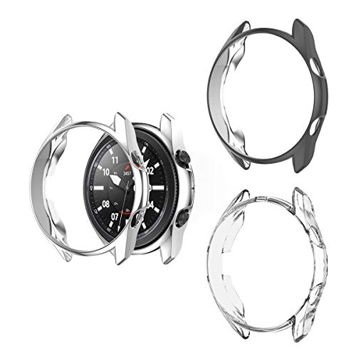 Cuteey - جراب لساعة سامسونج جالاكسي 3 45 ملم قطع من كيوتي حماية ناعم البولي يوريثين المقاوم للحرارة والصدمات لملحقات ساعة ووتش اسود - فضي - شفاف بولي اللدن بالحرارة