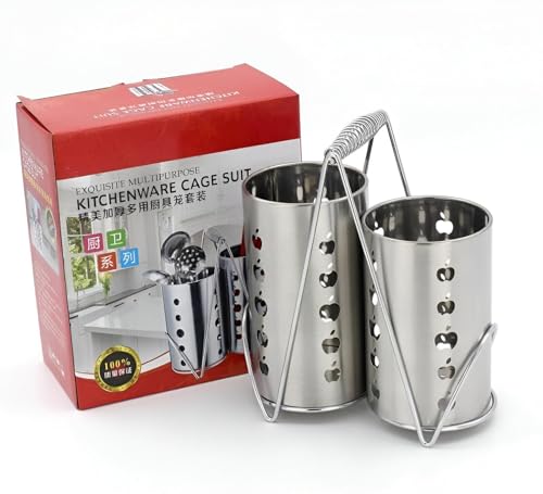 - This stainless steel kitchen utensil holder set features two perforated containers designed with circular cutouts that provide both aesthetic appeal and practical ventilation, allowing your utensils to dry quickly after washing while adding a stylish touch to your kitchen decor.