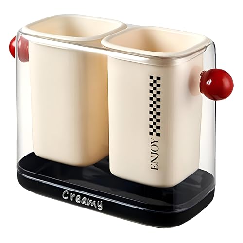 Generic - منظم أدوات المائدة - مصفاة اكريليك عصرية مزدوجة الشبكة مع صينية تصريف قابلة للإزالة، وأكواب صحية قابلة للفك، شفافة ومتينة، للمعالق والشوك وتوفير مساحة منظمة على سطح المطبخ
