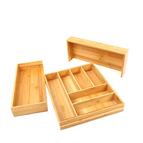 - Durable and versatile: cutlery tray drawers made of bamboo, which is particularly durable and scratch resistant. The drawer insert is not only limited to the kitchen, but can also be used as an organiser for your silver, for storing your jewellery or for organising your stationery, cosmetics, drawing utensils and other items.