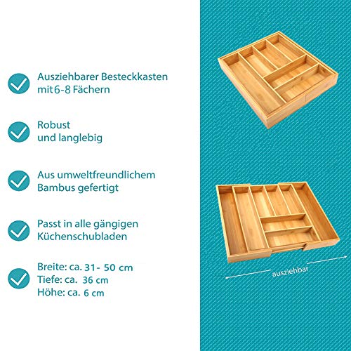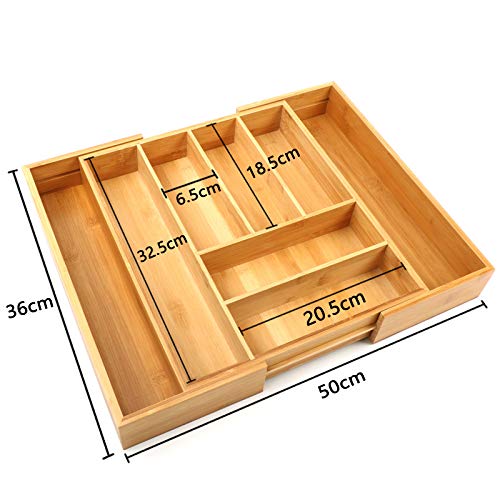 uyoyous - Cutlery Tray with 8 Compartments 36 x (31-50) x 6 cm (L x W x H) Scalable Bamboo Drawers Kitchen Drawer Inserts Drawer Insert Extendable Kitchen Organiser for Drawer Organiser and Divider