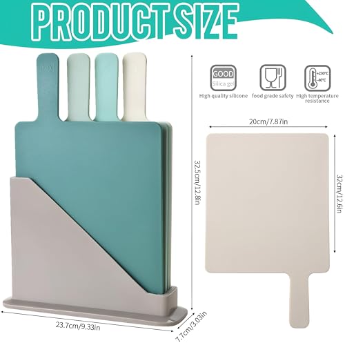 Generic - مجموعة الواح تقطيع من 4 الواح تقطيع بلاستيكية متينة مع قاعدة ثابتة ومؤشرات الوان واسطح قابلة للصحون ومقبض امن للفواكه والخضروات والخبز والوجبات المطبوخة وبقايا الطعام. (لون 1)