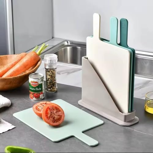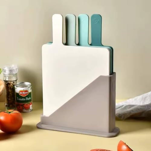 Generic - Cutting Board Set of 4 with Organizer Stand - Practical Set for Cutting Food, Vegetables and Fruits TN