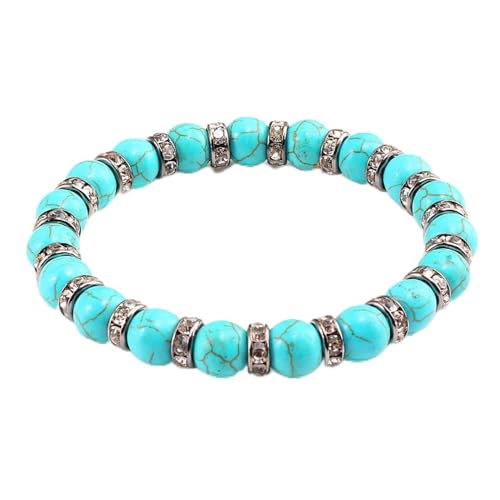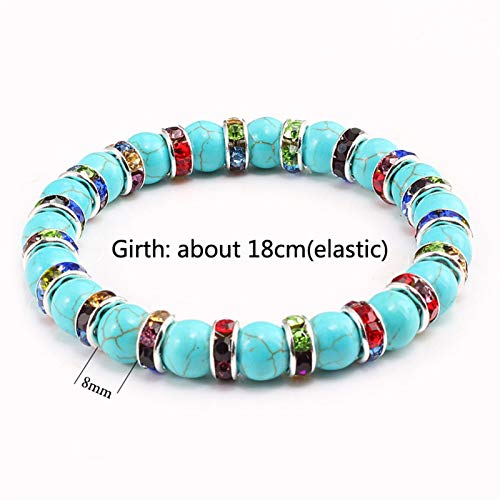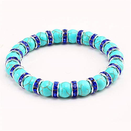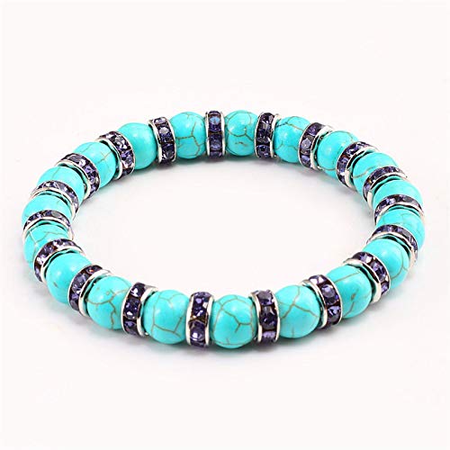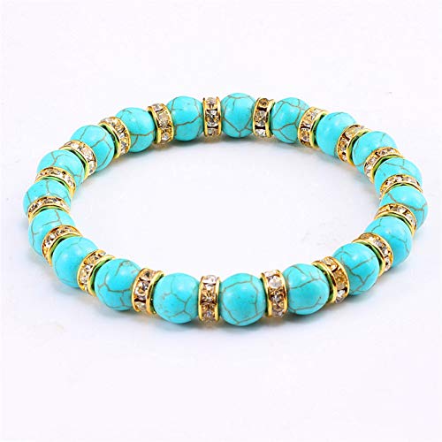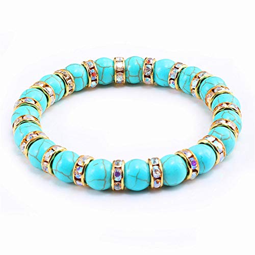 CXBH - Natural Blue Turquoises Stone Charm Bracelets For Women Men Rhinestones Chakra Beads Strand Bracelet Buddha Prayer Jewelry Gifts (Length : 18cm(elastic), Metal Color : Gold Black Gun)
