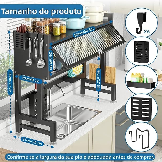 - 🍅{Larger capacity}Kitchenware can be stored more efficiently centralized, suitable for single sink and double sink inside 33 inch, hook area kitchenware, POTS and pans area, seasoning bottle, seasoning area hanging tube chopsticks, spoons and small knives and forks, a plate area with multiple bowls and dishes, cleaning area where you can put soap and dishwashing supplies, where you can put cutting board, where you can put cutting board or jar lid, where you can put knife holder, You can put three to six knives.