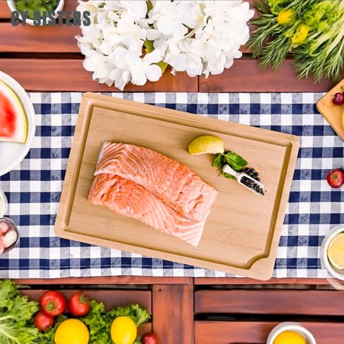- 【Multi-Use: Cutting, Serving, Display】: These bamboo kitchen boards work as meat cutting boards, vegetable prep trays, cheese and cracker platters, or breakfast serving trays. Whether you're slicing in the kitchen or displaying snacks at a party, they double as decorative bamboo platters for elegant food presentation.