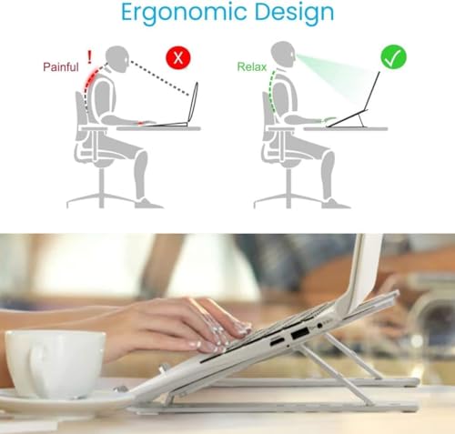- 6-Position Adjustable Height - Features ergonomic design and multi-range adjustable arm for a comfortable angle according to your needs, and relieve spinal pain Equipped with anti-slip silicone to enhance stability and prevent vibration and movement during use, with the curved design allows for rapid typing more stable and no shaking.