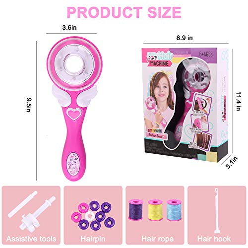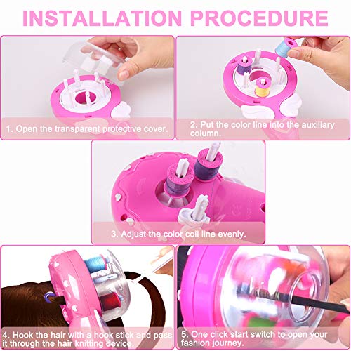 - EASY TO USE: One-click use is very simple, Open the transparent cover, put the color line group into the auxiliary column, adjust the color coil margin to balance, hook the hair, and pass through the braid, start the switch with one key, and start the fashion journey, It is very convenient to use and designed for girls to create their own hair style.